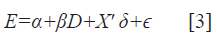 E: es una variable dummy que toma valor igual a 1 si la firma exporta sus productos y que vale 0 en caso contrario.9