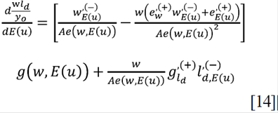 total, se partirá de la definición de masa salarial por unidad de producto: Sustituyendo la ecuación [8] en [5], para expresar la oferta de producto en términos de demanda de trabajo se obtiene: y0= e(w,E(u))Af(µld ), empleando esta expresión se obtiene: