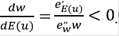 En este artículo se asumirá que |e”w,ww| > e´w por lo cual [e'ww´ + e´E(u)] > 0. Es decir, los trabajadores se esfuerzan más ante la expectativa de una mayor tasa de desempleo, pese a la reducción en el salario real. Esta característica de la función esfuerzo es coherente con la evidencia estadística para México, la cual muestra que los trabajadores mexicanos son de los que más horas trabajan (más se esfuerzan) en la OCDE, pese a los bajos salarios recibidos. El mayor esfuerzo de los trabajadores reduce la demanda de trabajo, puesto que se requiere menos trabajo para obtener la misma cantidad de producto.