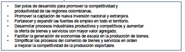 El Gobierno pretende reducir la disparidad regional con diversas políticas y entre ellas se encuentra el Programa de Transformación Productiva y la de estímulo a la creación de zonas francas, ZF, con el propósito de que estas contribuyan a aumentar la producción y a diversificar la canasta de exportaciones, atraer nueva inversión y aumentar el empleo, además de facilitar la innovación y el cambio tecnológico en las regiones colombianas (Ministerio de Comercio, Industria y Turismo [MINCIT], 2011).