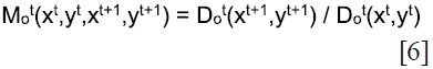 Mot(xtyt.xt+1.y t+1) coteja (xt+1,yt+1) a (xt.yt) mediante la comparación de sus respectivas distancias para el período tecnología t. Mot(xt,yt,xt+1,yt+1) se basa en funciones de distancia de salida definidas en relación con una tecnología de referencia que satisface los retornos variables a escala. Esto permitió a Grifell y Lovell (1995) mostrar que Mot(xt,yt,xt+1,yt+1) ≥ ≤ 1 según el crecimiento de la productividad, el estancamiento o la disminución de la productividad, el efecto neto de las economías de escala, se ha producido entre los períodos t y t + 1, desde la perspectiva del período t de tecnología.
