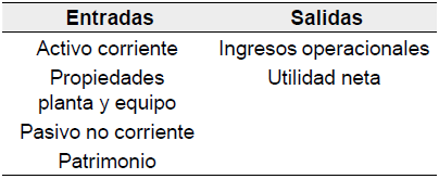 Delimitación de entradas y salidas: dado que DEA es un modelo no paramétrico de frontera, en el cual no es necesario establecer previamente la función de producción, y que las variables determinantes del modelo son los recursos utilizados (entradas) y lo que se obtiene del proceso de transformación de ellos (salidas), las variables utilizadas en esta investigación se muestran en la Tabla 2.