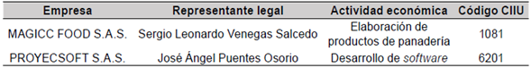 Los autores agradecen a las dos empresas participantes en el estudio, Magicc Food S.A.S. y Proyecsoft S.A.S, así como a los pares evaluadores por sus observaciones.