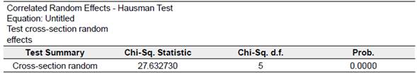Una vez se corre el modelo con las variables significativas, se procede a aplicar el test de Hausman para determinar si el método de efectos fijos o de efectos aleatorios es el más adecuado para estimar el modelo, el cual se puede observar en la Tabla 3. Como el p-valor es < 0.05, se rechaza la hipótesis nula de igualdad con un 95 % de confianza, lo que confirma que la estimación se debe llevar a cabo por el método de efectos fijos (Montero, 2005).
