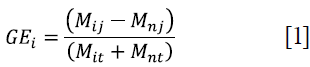 The GE>1 indicates that the country participates in the product market, in the destination country, in higher proportion than the average of its participation in that market, which means that it has a comparative advantage revealed in the good. The GE=1 indicates that the country participates in the product market, in the country of destination, in similar proportion to the average of its participation in that market, so it has no advantage or disadvantage revealed in that good. Finally, the GE<1 indicates that the country participates in the product market, in the country of destination, in a lower proportion than the average of its participation in that market, which means that it has a comparative disadvantage revealed in that good (Centro de Investigaciones para el Desarrollo [CID], 2007).