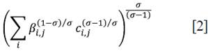 The elasticity of substitution between the goods is given by σ. Parameter βi can be interpreted as the preferences of consumers towards the goods of the different countries or the quality of the goods produced in a certain country c¡j , represents the quantities consumed of the good produced in i by a consumer in j.
