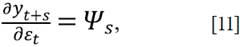 donde Ψs es una matriz nxn, siempre que el VAR sea estacionario y pueda expresarse como un proceso vectorial de media móvil, y la interpretación derivada de la ecuación (11) es que el elemento i, j de la matriz Ψs identifica las consecuencias de una variación en el momento t de la variable yi para los valores de la variable yi en t+s, esto es, para yj,t+s . Así, estas funciones representan el impacto de las variables (retardos propios y retardos de las demás variables) sobre las variables independientes.