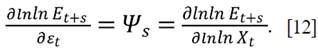 Técnicamente hablando, un choque en una variable tiene un efecto en cadena que se expande a las demás variables, de modo que una vez estimado el VAR, lo que es posible calcular o simular son los choques en la producción de biocombustibles y su efecto sobre el empleo Et en s>0 periodos adelante, es decir: