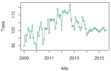 Posteriormente, sobre la serie transformada en la dejumped, se aplicó la prueba aumentada de Dickey y Fuller de raíz unitaria y se comprobó que dicho tratamiento produce una serie estacionaria en niveles.