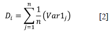 Donde Di es el valor agregado de la dimensión i, n representan la cantidad de variables j que componen la dimensión i, y Var1j es el valor agregado de la variable j de primer orden relacionada con la dimensión i. De igual forma, se tiene que