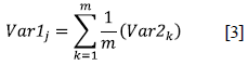 Donde Var1j es el valor agregado de la variable j de primer orden, m representa la cantidad de variables k que componen la variable j de primer orden, y Var 2k es la calificación de la variable k de segundo orden relacionada con la variable j de primer orden.