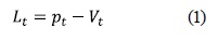 Let Vt denote the analysts consensus price target at date t and pt denote the stock price at date f. We define the projected loss estimated by analysts from buying a stock as: