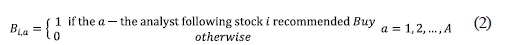 Since Bi,a is a dichotomous variable then E(Bi,a) = Pi,o where Pi,o is the probability that an analyst recommends buy for stock i. Therefore, the above expression is: