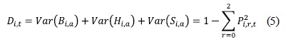 Denoting Pi,o, Pi,1 and Pi,2 as the proportion of analysts, at a certain date t = 1,2, ...,T, whose recommendations were buy, hold and sell respectively, and summing up the variance through recommendations we get a measure for the dispersion in recommendations of stock i,D_{i,t} (see e.g., Budescu & Budescu, 2012):