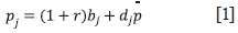 Kalecki (1977) argumenta que los oligopolios fijan su precio (p) con base en sus costos unitarios (b) y en los precios que determinan sus competidores sobre bienes similares. En este documento se retoma esta idea, pero, a diferencia de Kalecki (1977) y de forma análoga a Velázquez (2022), se asume que el sobrecosto que la empresa fija sobre sus costos unitarios es la tasa media de ganancia de la industria (r), pues esta es la rentabilidad mínima que las empresas desean tener independientemente de la competencia. La tasa media de ganancia se presume conocida por todos. En consecuencia, la ecuación de precios para la empresa j es: