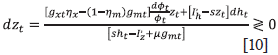 El segundo término del denominador expresa cómo se modifica el mercado interno ante la mayor participación de las ganancias en el ingreso. Así, un incremento en la participación de las ganancias en el ingreso aumenta la rentabilidad de la inversión y, por ello, las empresas invierten más (l'h> 0). Por otro lado, la menor participación de los salarios en el ingreso implica que los salarios reales disminuyeron y, con ellos, el consumo de los trabajadores. No obstante, el ingreso de los capitalistas creció en el mismo monto que disminuyó el ingreso de los trabajadores. Sin embargo, el consumo capitalista no aumentó en el mismo monto en que se redujo el consumo de los trabajadores. Esto debido a que los capitalistas consumen solo una parte de su ingreso y los trabajadores consumen todo su ingreso. De este modo, el mayor ingreso capitalista aumenta su consumo y su ahorro, la suma de estos dos es equivalente a la reducción del consumo de los trabajadores. En consecuencia, el incremento en el ahorro capitalista (szt) equivale a la reducción del consumo total. Apriori no se puede saber si el monto en que se incrementó la inversión será mayor o menor que el monto en que se redujo el consumo. Si la inversión crece más (menos) que la caída en el consumo, se dice que la demanda interna es guiada por ganancia (salarios).