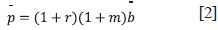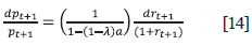La ecuación [14] muestra que el incremento en la tasa de ganancia provoca que los precios aumenten. Esto es debido a que la mayor tasa de ganancia genera que la participación de las ganancias en el ingreso se incremente (ecuación 15), lo cual solo es posible si los precios aumentan y, a causa de ello, el salario real se reduce.