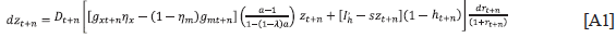 Expresando [12] en t + n y sustituyendo en ella [15] y [16] expresadas en t + n - 1 se obtiene: