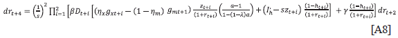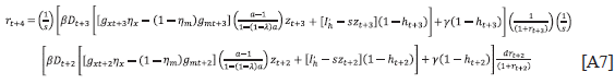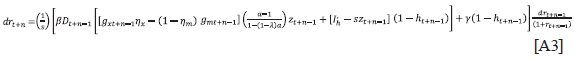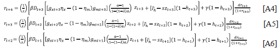 En este anexo se explica cómo el modelo se hace recursivo y cómo se soluciona esta recursividad para obtener trayectorias. Es importante aclarar que no se pretende obtener las trayectorias de los niveles, sino de las variaciones. Esta forma de resolver el modelo facilita analizar cómo la variación de una variable en el momento t modifica sus valores posteriores y a las demás variables en los siguientes momentos.