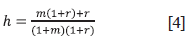 La ecuación [4] muestra que la participación de las ganancias en el ingreso (h) depende de la tasa de ganancia y del grado de monopolio. Si la tasa de ganancia es cero, entonces la participación de las ganancias en el ingreso estaría determinada solo por el grado de monopolio, como usualmente sucede en la teoría poskeynesiana. Por otro lado, si el grado de monopolio fuese cero, entonces la participación de las ganancias en el ingreso estaría determinada únicamente por la tasa de ganancia.
