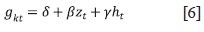 En la ecuación [6], δ representa la determinación de los capitalistas a invertir independientemente de la demanda y la rentabilidad de la inversión. Hein (2014) señala que esta representa los espíritus animales de los capitalistas de los cuales habla Keynes (2004). β y γ muestran la sensibilidad de la tasa de acumulación ante cambios en la demanda y su rentabilidad, respectivamente.