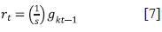 La ecuación [7] es la ecuación de Cambridge con un ligero cambio: la tasa de acumulación está rezagada un período. Esto se debe a que el tiempo es histórico e importa en la medida que muestra causalidades (Robinson, 1980). Así, la ecuación [7] indica que las empresas primero invierten y, una vez que el mercado valida esa inversión, ganan.