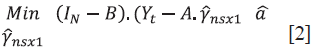 La matriz BNxN es conformada por las ponderaciones o pesos w¡ de los controles sintéticos14. Los elementos de la diagonal [bjj= 0] son cero. Esto es: