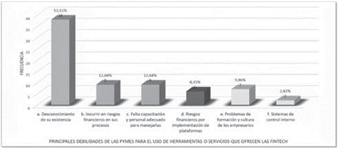 23. ¿Cuáles cree que son las principales debilidades que se le presentan a las pymes en cuanto a herramientas de la tecnología financiera fintech?