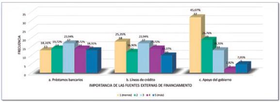 El financiamiento externo es obtenido, como medio principal, por un 37 % de las empresas, que puede que incrementen sus utilidades, pero hay que tener presente que este tipo de financiamiento tiene un costo convenido de manera anticipada que se incrementa tanto por el interés y las comisiones pactadas como por el efecto inflacionario.