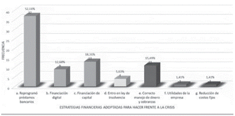 Los resultados muestran que las entidades fueron fuertemente afectadas -con un 33.80 %- en la liquidez y capital de trabajo, factor que les impidió no solo producir, sino cumplir sus obligaciones financieras frente a pagos de salarios, seguros y préstamos bancarios. Por lo que los retos a los que tengan que enfrentarse serán la implementación de nuevos planes y modelos de negocio, digitalizar procesos y minimizar las interacciones físicas, así como superar esquemas tradicionales para implantar otros con estructuras ágiles y capaces de adaptarse a los cambios.
