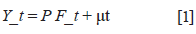 En la ecuación 1, el vector Yt corresponde a las series de las variables seleccionadas inicialmente, en este caso relacionadas con el SC; t donde la t-ésima serie de tiempo. Ft representa los factores comunes no observables y comunes a todas las series; P reúne la matriz de cargas o pesos de cada factor en cada serie; y μt son los errores idiosincráticos del modelo o componentes específicos de cada serie, los cuales no son capturados por el componente común. El modelo permite que tanto el componente común como el componente idiosincrático tengan una estructura dinámica, que se representa a continuación en las ecuaciones 2 y 3: