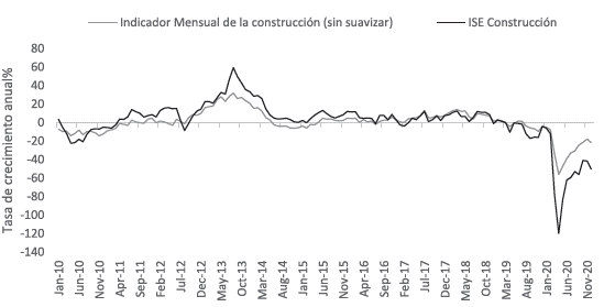 El indicador mensual de la construcción para el Valle muestra la mayor contracción mensual en los años afectados por la pandemia COVID-19. Para el año 2019, los meses de alerta fueron octubre y noviembre; en el año 2020, los meses de mayor afectación fueron abril y mayo. Esto generó alertas en las dinámicas de insumos, ventas de vivienda, empleos y proyectos de desarrollo civil.