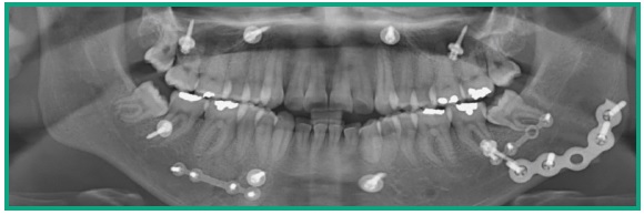 Palabras clave:radiografía panorámicaradiografía panorámica, material de osteosíntesis material de osteosíntesis, trauma trauma, patología quirúrgica patología quirúrgica, cirugía ortognática cirugía ortognática.