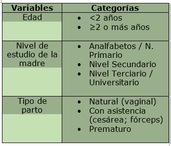 Las madres dieron consentimiento informado por escrito para participar ellas y sus niños en la investigación. Se aplicó una entrevista semiestructurada diseñada ad-hoc, a las madres o acompañantes del niño, para indagar aspectos socio-demográficos-culturales, hábitos de higiene bucal, gestación, dieta, tipo de parto y lactancia.