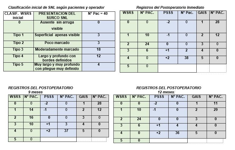 En la Fig. 5 se presentan las tablas de las evaluaciones pre y post-implantes de las escalas WSRS, GAIS y PSSS, resultantes.