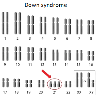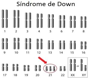 El Síndrome de Down es causado por la presencia de tres cromosomas 21 en todas o en la mayor parte de las células de un individuo. Esto ocurre en el momento de la concepción de un niño. Las personas portadoras de síndrome de Down, o Trisomía del cromosoma 21, poseen 47 cromosomas en sus células en vez de 46, como la mayor parte de la población.