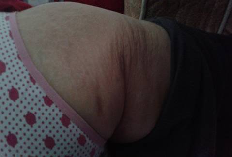 Según relato de su cuidadora, ella presentaba cicatrices en varias partes del cuerpo debido a las frecuentes agresiones sufridas durante los años que vivió junto con su hermano, quien la maltrataba. (Figs. 2 e 3).