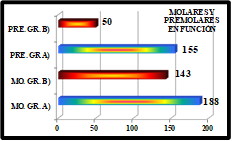 De acuerdo a la ubicación en las arcadas dentarias, 331 IOOs en función estaban en molares y 205 en premolares (Fig. 5). Se observó una diferencia estadísticamente significativa en el número de IOOs en función, restaurando molares y premolares entre ambos grupos (OR = 0.42, p < 0.001).