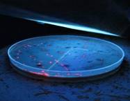 Colonias fluorescentes de Prevotella intermedia frente a luz ultravioleta