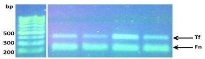 De la muestra en RTF se tomaron muestras de 100 µl además de la muestra original y se almacenaron a -30ºC para luego ser procesadas con la técnica de PCR. Se utilizaron las cepas silvestres como controles positivos: Aggregatibacter actinomycetemcomitans (ATCC 29522), Porphyromonas gingivalis (BAA-308), Prevotella intermedia (ATCC 25611), Tannerella forsythia (ATCC 43037) y Fusobacterium nucleatum (ATCC 25586).