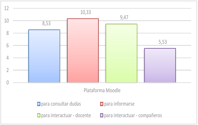 Al poner a consideración de los estudiantes los entornos virtuales de aprendizaje mediante la valoración de la plataforma Moodle utilizada en el curso de Histología de 1º año de la carrera de doctor en odontología de la Faculta de Odontología de la UdelaR, pudimos comprobar que presenta una alta valoración en lo que tiene que ver con la posibilidad de consultar dudas al igual que lo plantea Vidal Ledo M et al20, coincidiendo en la idea de que posibilita el apoyo a la enseñanza fuera del aula, posibilitando el intercambio entre el docente y el estudiante en el momento que este reflexiona sobre los contenidos en busca de lograr aprendizajes óptimos.