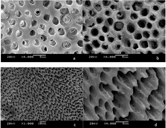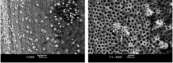Para valorar el grado de erosión en las paredes de los túbulos dentinarios, se confeccionó una escala con 4 niveles: