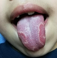 En ambos casos presentaron lesiones de lengua geográfica. Se les realizó la historia clínica completa y consentimiento informado, según el comité de bioética de la Institución.