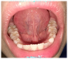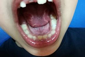 En el examen extraoral presentaba los labios hipertónicos. En el examen clínico intraoral se observó dentición mixta temprana, con tejidos blandos normales.
