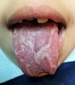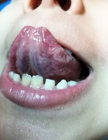 Las lesiones en el órgano lingual en este niño presentaban periodos de remisión y exacerbación de variable duración como se puede observar en las figuras 4 y 5. A los 15 días de control desaparecieron casi por completo de forma espontáneamente.