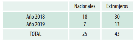 En este sentido, a continuación se presentan la nómina de revisores de Odontoestomatología (Tablas 1,2 y 3) que actuaron en los años 2018 y 2019. En este período fueron publicados 40 artículos que comprenden 20 trabajos nacionales y 20 extranjeros, siendo 10 los manuscritos no aceptados.