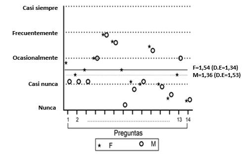 Las participantes femeninas señalaron un mayor nivel de afectación en la calidad de vida que los participantes varones (Figura 2).