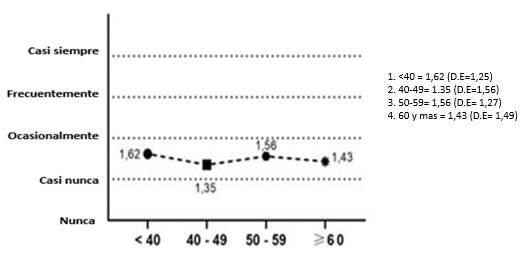 El componente cuantitativo del estudio no permitió encontrar grandes diferencias en el nivel de afectación en las distintas franjas etarias. Esto puede obedecer a que la muestra fue pequeña como para generalizar los resultados. Sin embargo, hay una leve tendencia en los menores de 40 años a tener mayor afectación. En este punto se encuentra una coincidencia con la literatura consultada. 35-36