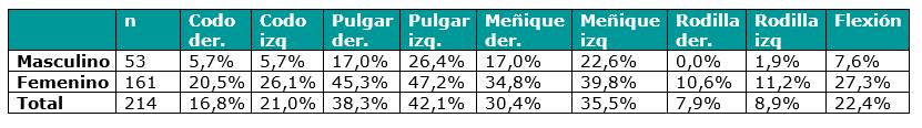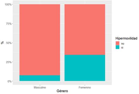 El rango de puntuación fue de 0-9, las mayores puntuaciones denotaron mayor hiperlaxitud. Se consideraron Beighton positivo aquellos participantes con 4 o más puntos. No se categorizaron a los pacientes en función de las articulaciones hipermóviles.