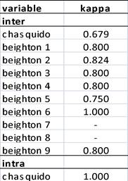 La calibración intra e inter examinador para ambos métodos diagnósticos fue descrita sólo en tres estudios18,20,26. La calibración es un procedimiento necesario para otorgar rigurosidad metodológica que garantice la confiabilidad de los resultados.